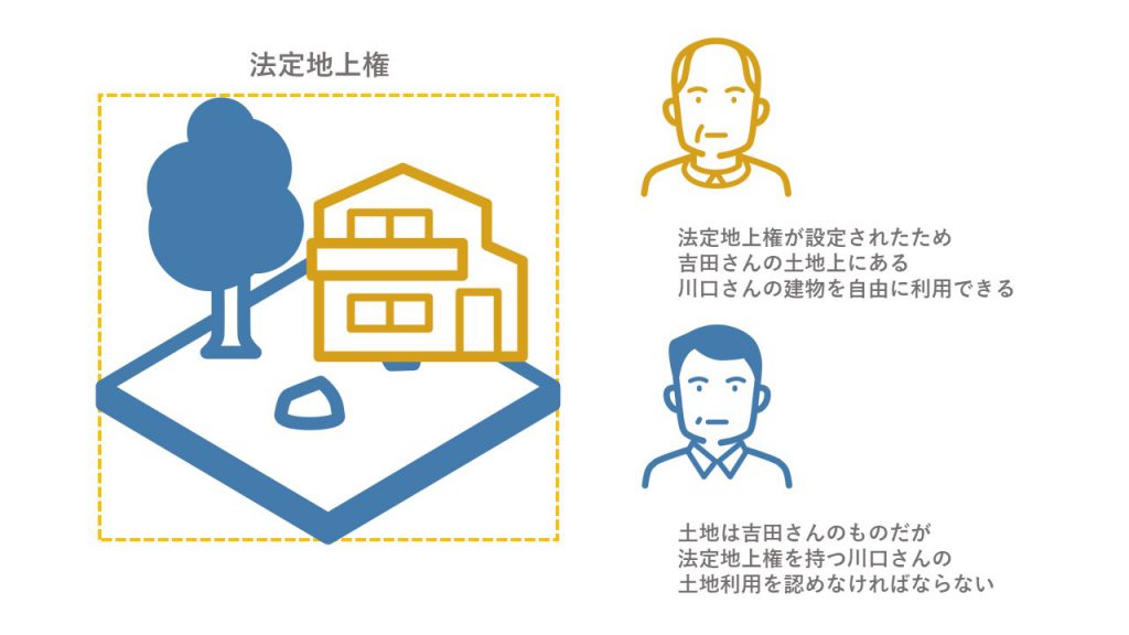 そのようなことがないように設定されるのが法定地上権です。法定地上権は自動的に発生するので、川口さんは吉田さんの土地上にある建物を自由に使えるようになるのです。