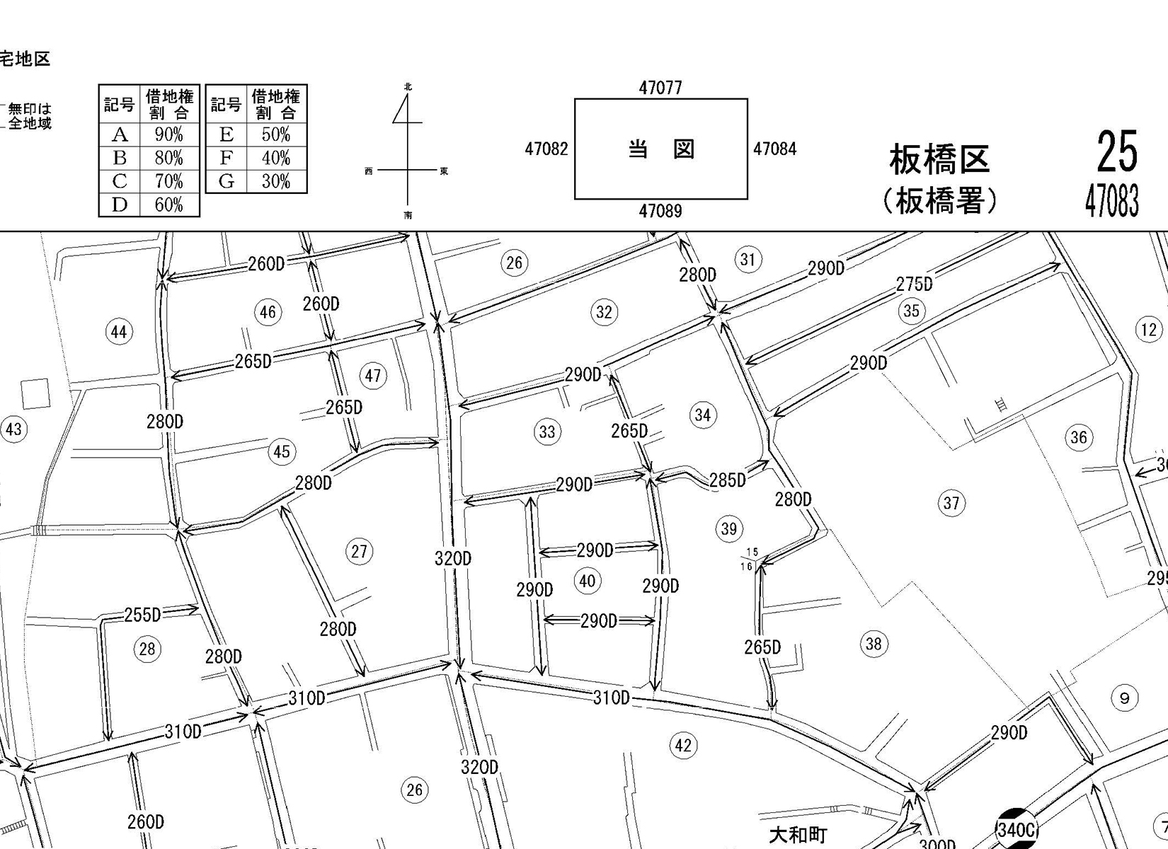 つまり「285D」とは路線価で1㎡あたり285,000円、借地権割合60%(地主さんの権利割合は40%)であることを示しているわけです。