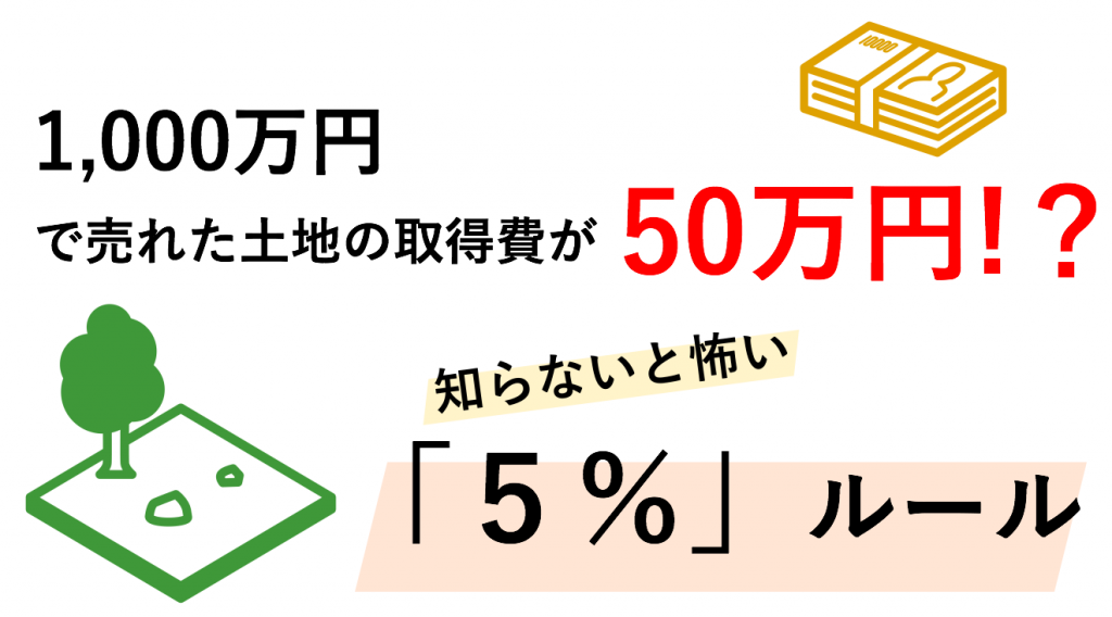 例えば、「1000万円で売れた土地の取得費用が50万円だった」というのは通常考えにくい状況ですが、その土地を買った時の価格を証明できなければ、取得費は50万円で計上するほかありません。さらに、この「売却価格の5%」を取得費にする時は、上記のような、土地の購入にかかったこまごまとした諸費用を含めることもできないのです。