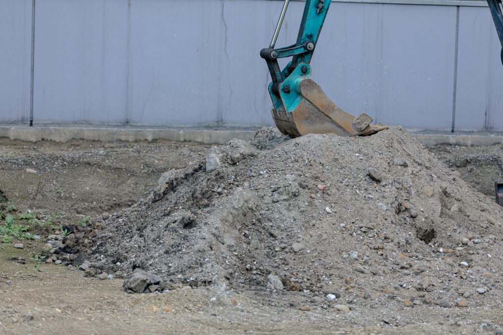 ショベルカーと工事現場