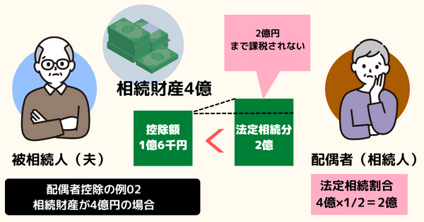 この場合、相続控除額はいくらでしょうか。答えは1億6千万ではなく、法定相続分である2億円までが税額控除(非課税)の扱いとなるので注意しましょう。