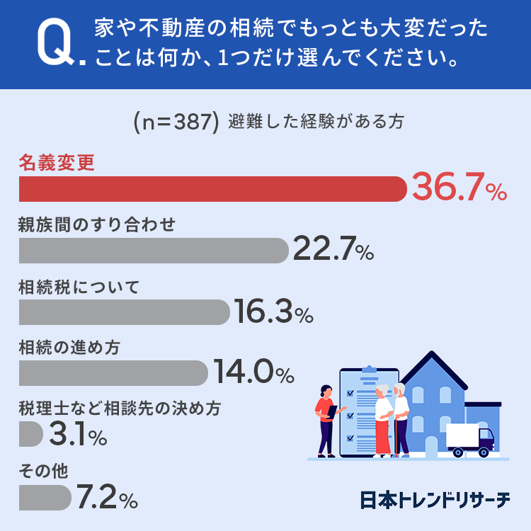 もっとも大変だったことのトップは「名義変更」(36.7%)でした。