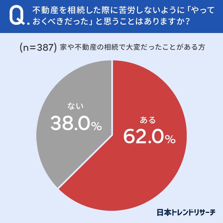 【不動産の相続】62%が苦労しないように“やっておくべきだった”と思うことが「ある」 - 調査内容: