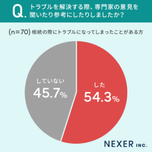 今回のアンケート調査では、相続時にトラブルが発生した人のうち、54.3%が「専門家の意見を参考にした」と回答しています。