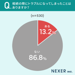 続いてアンケートでは、相続の際にトラブルになってしまったことはあるか聞いてみました。結果は、相続を実際に経験した方のうち、13.2%が「トラブルを経験した」と回答しています。