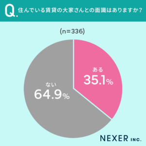 その結果、64.9%が「大家さんとの面識がない」と回答しており、実に6割以上が“顔の見えない関係”で生活していることが明らかになりました。