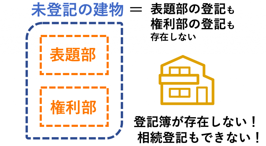 未登記の建物とは、建築時に「表題部登記」を行っておらず、その建物の登記簿がまだ作成されていない状態です。